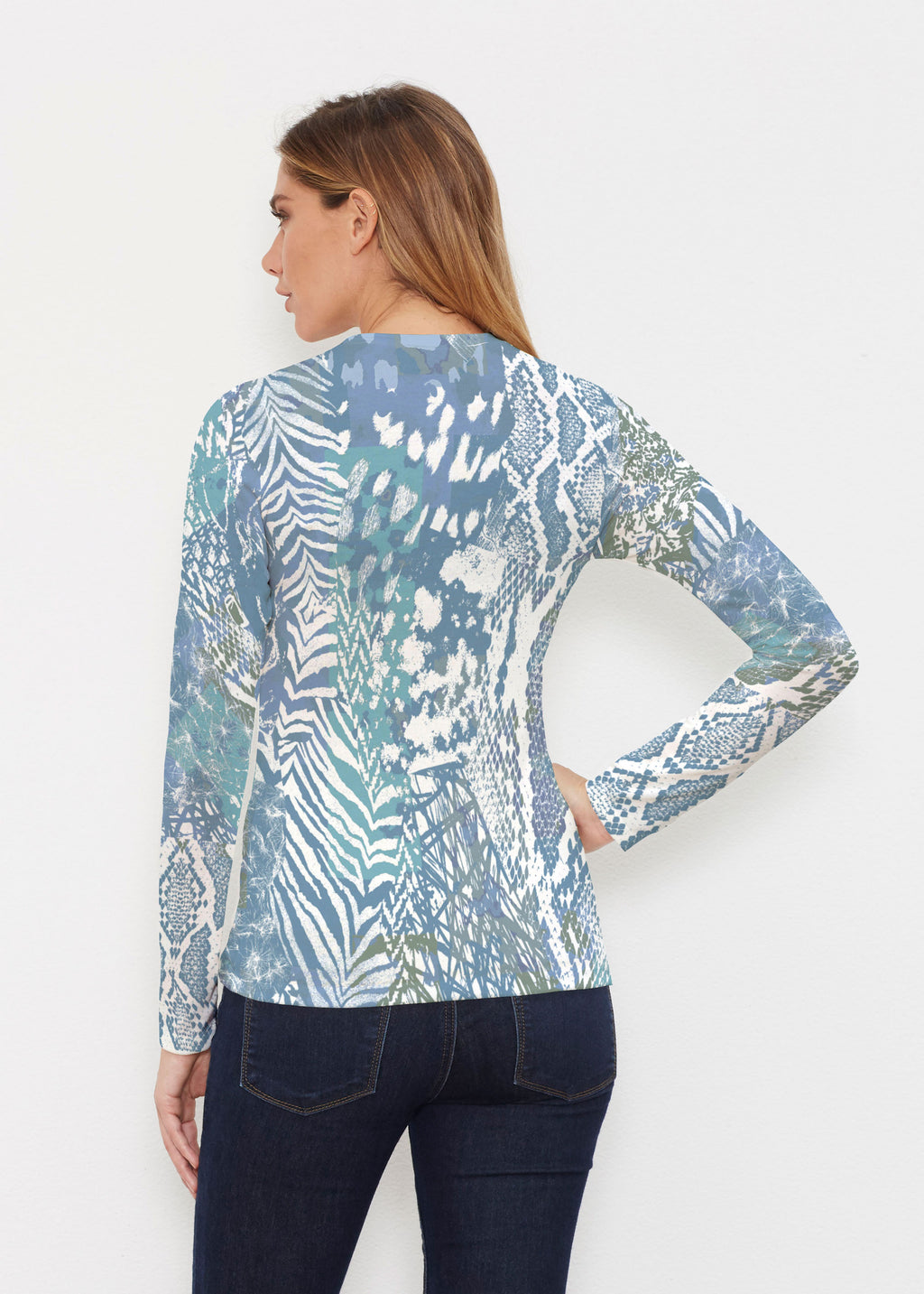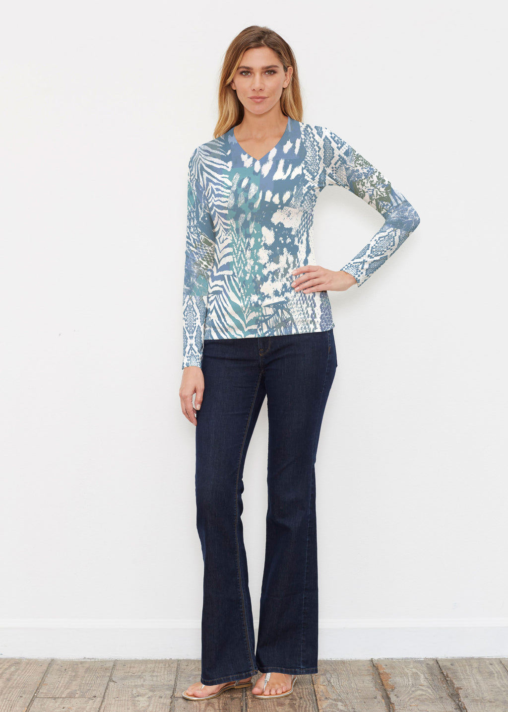 Jungle Warrior Blue (7850) ~ Butterknit Long Sleeve V-Neck Top