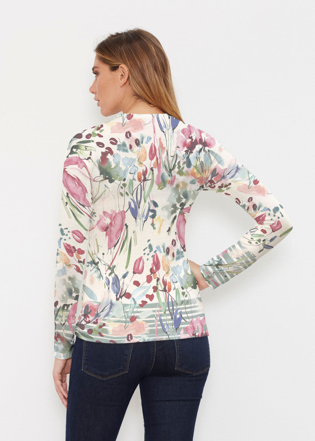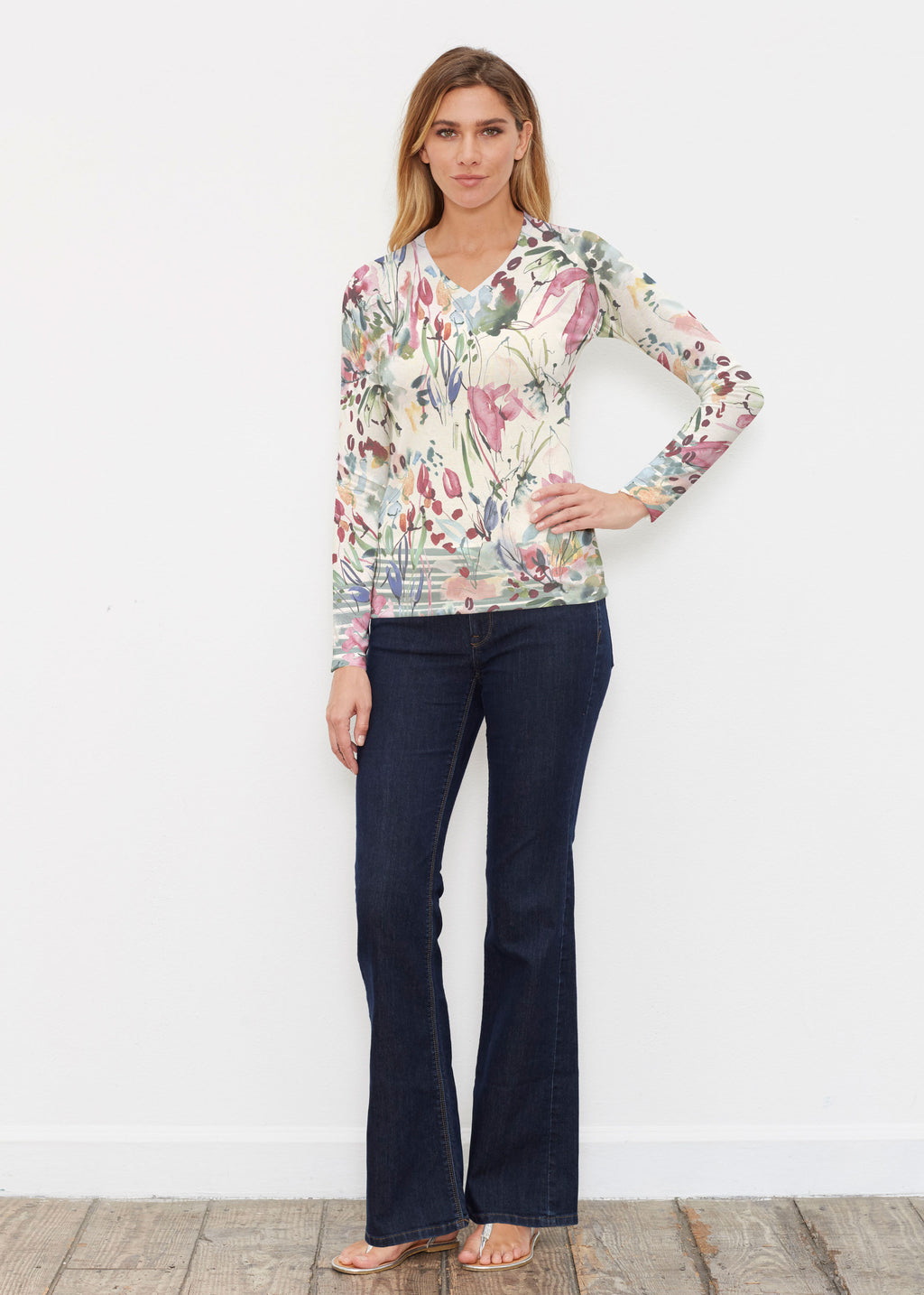 Polished and elegant, this top is a sophisticated option for chillier temps. Our soft and cozy Butterknit fabric, long sleeves, fitted shape, and v- neck make the perfect comfortable and stylish look in your favorite print.
