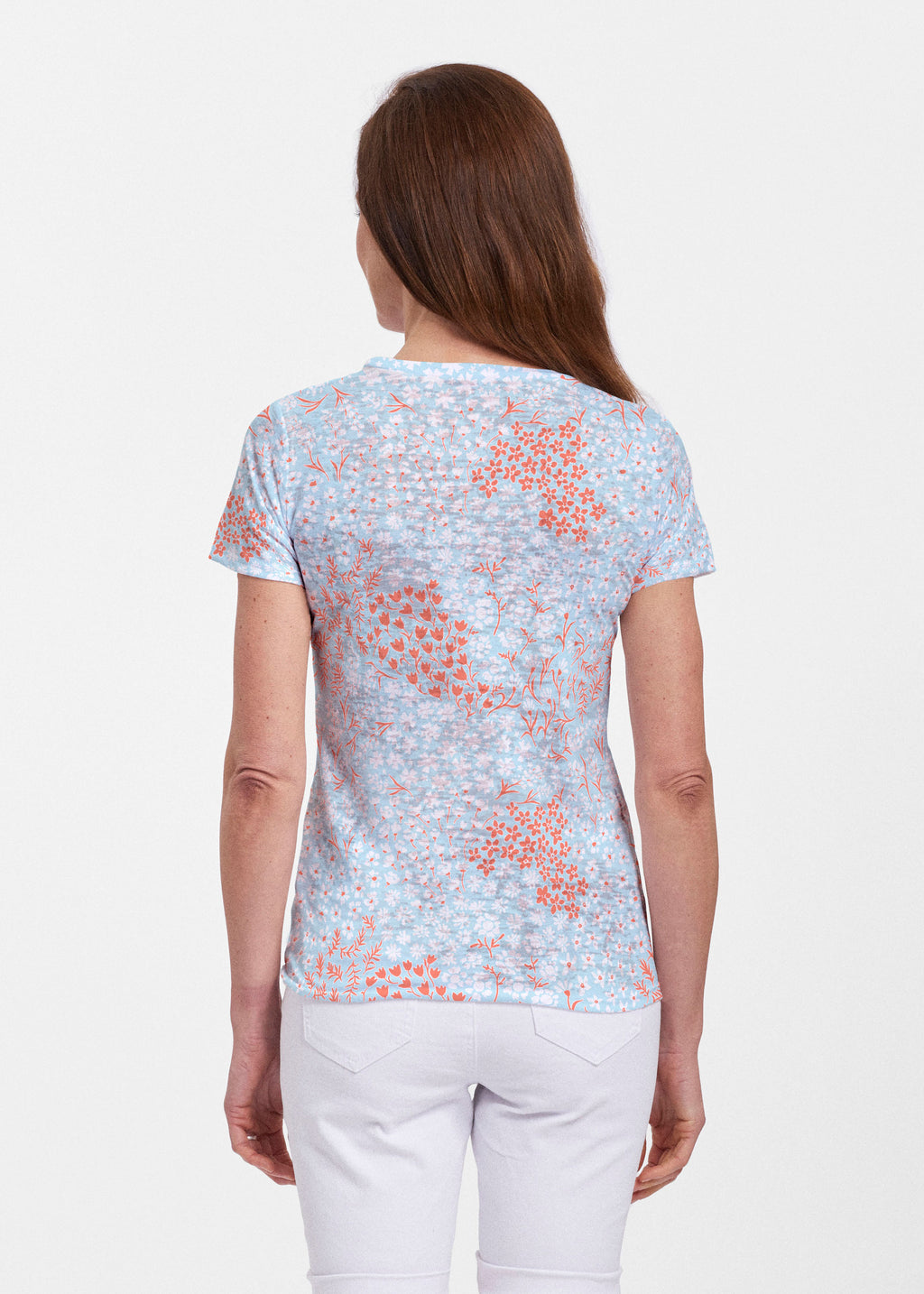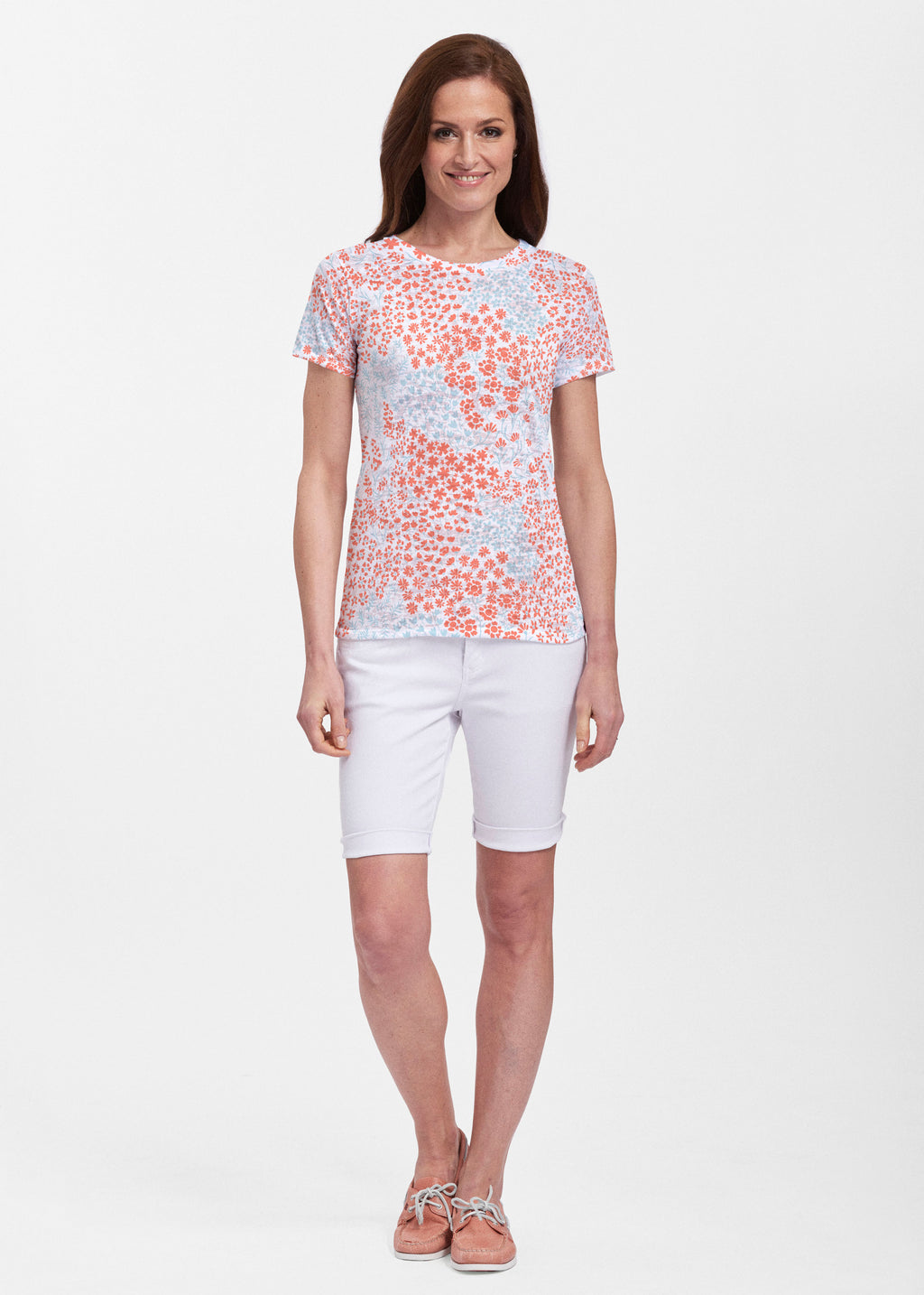 B+A's Sheer burnout fabric provides a fun contemporary look with a more visible burnout texture, that is truly soft to the touch. A nicely fit shirt that falls at the hip, available in both crew and v-neck short sleeves.