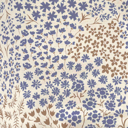 A breathtaking field full of wildflowers in shades of blue and brown dancing across a white canvas.