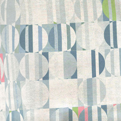 Beautiful striped geometric circles in lime, pinks and greys by Susan Werner