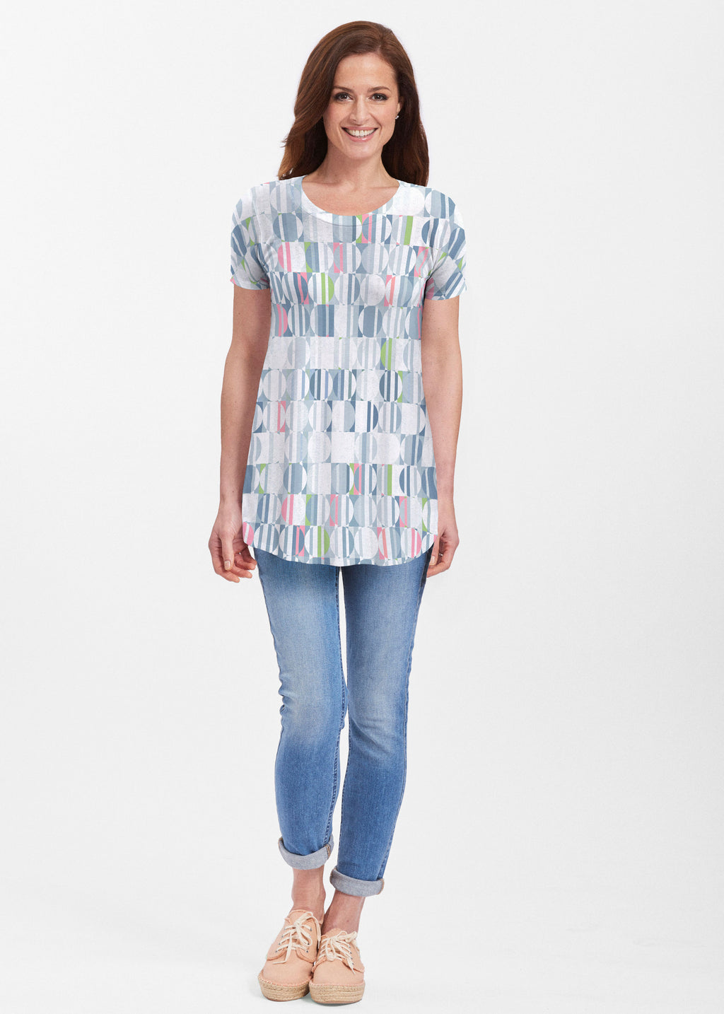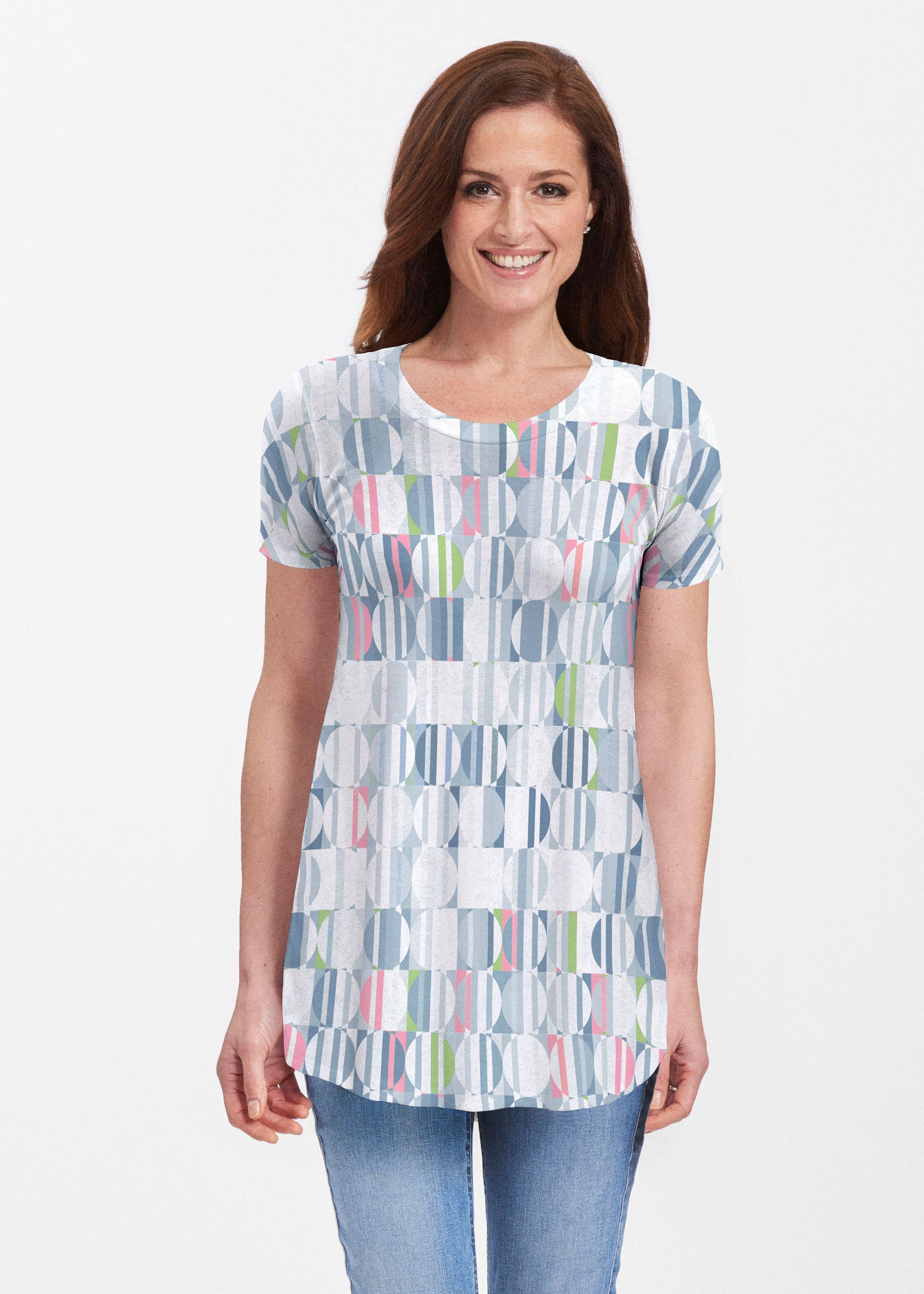 Around We Go (8012) ~ Short Sleeve Scoop Neck Flowy Tunic
