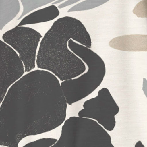 An oriental vibe on a creamy scene of light grey, gold and black.