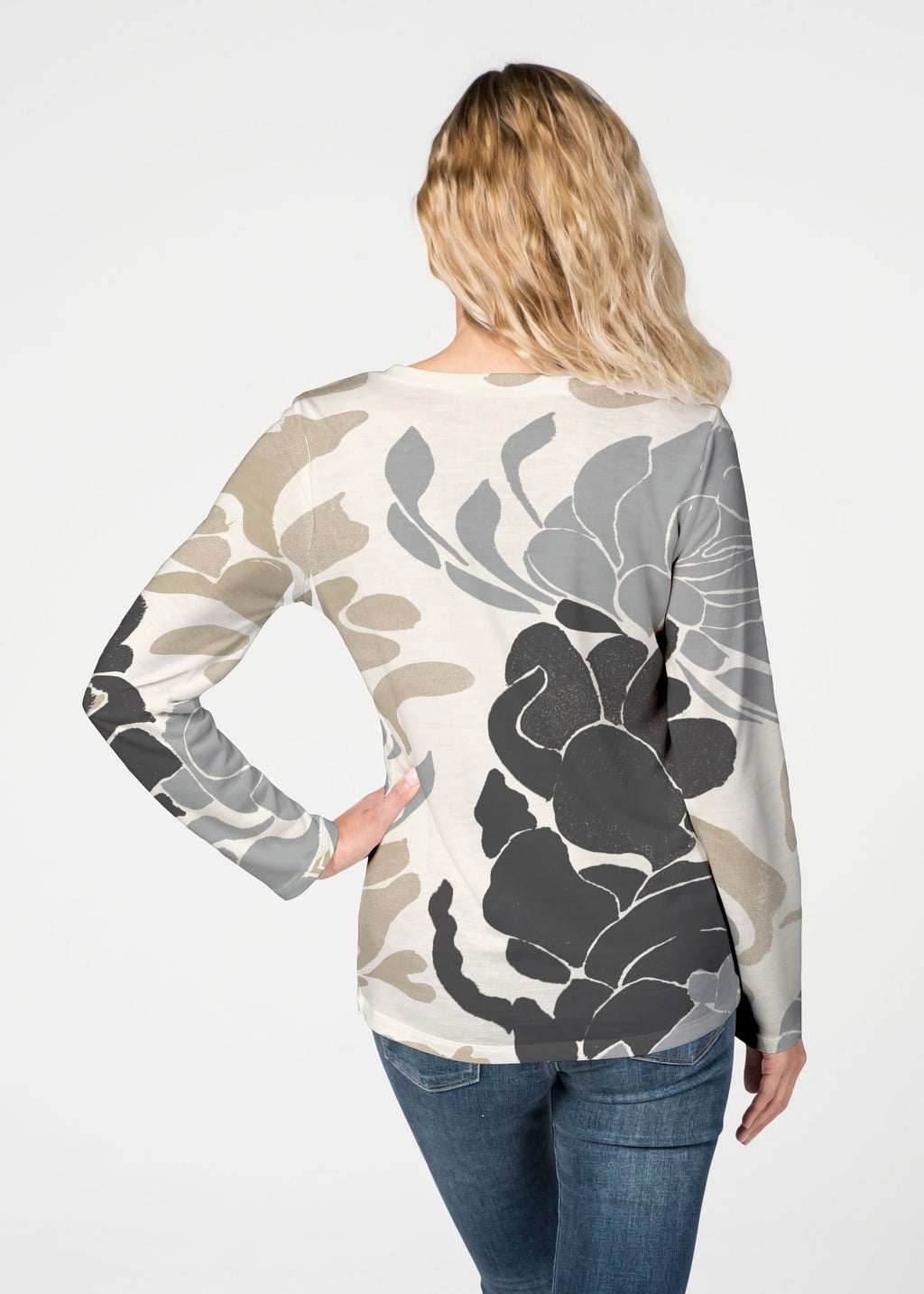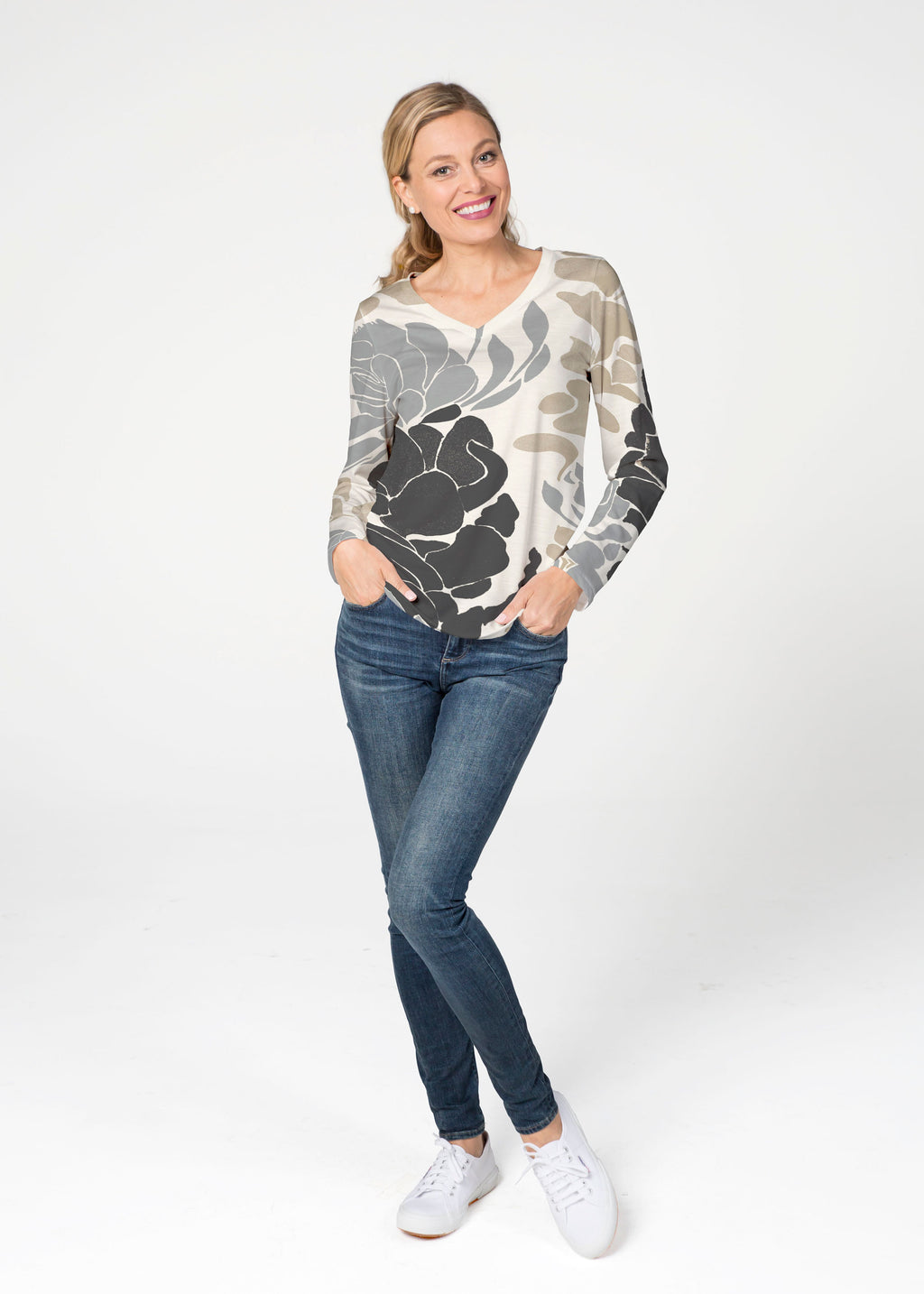 Our French Terry top is comfort and style all in one! Our French Terry top that features long sleeves, a V-neck and a more fitted silhouette that looks stylish in any print.