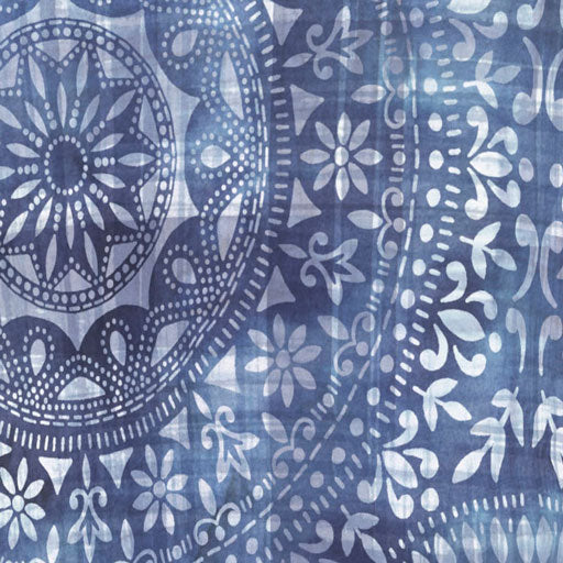 Striking geometric print in blue and white with contrasting floral print on sleeves. Designed by Diane Kappa.
