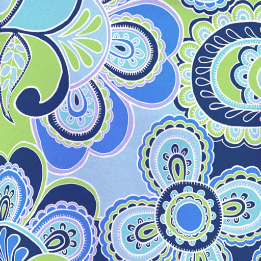Fanciful blue, lime and turquoise print with contrasting front and back print designed by Diane Kappa.