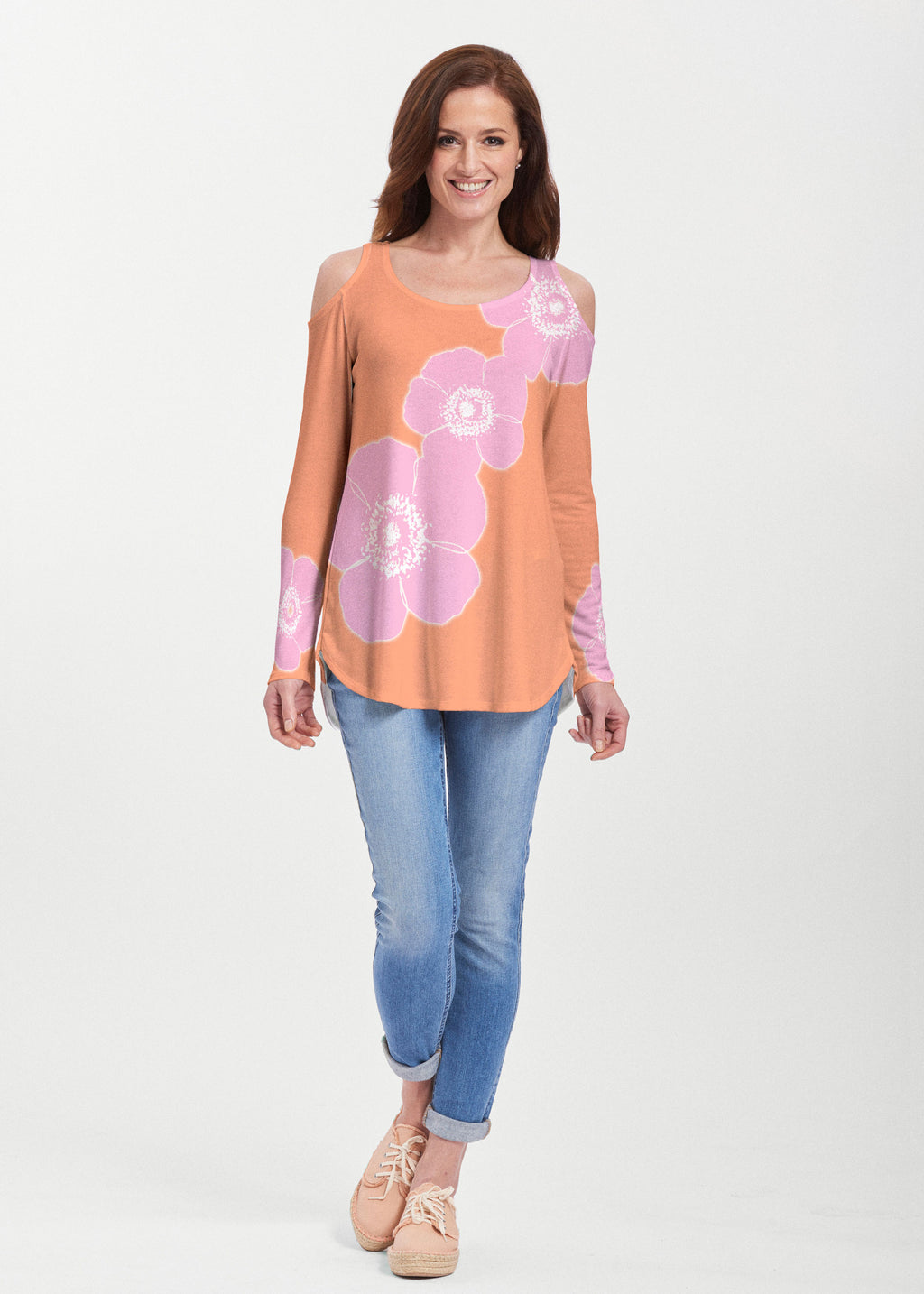 Put on comfort and style with our soft Butterknit Cold Shoulder Tunic. Subtle cut-outs, scoop neck, and long sleeves balance the relaxed shirttail hemline. Approximately 29.5 in. long size M.
