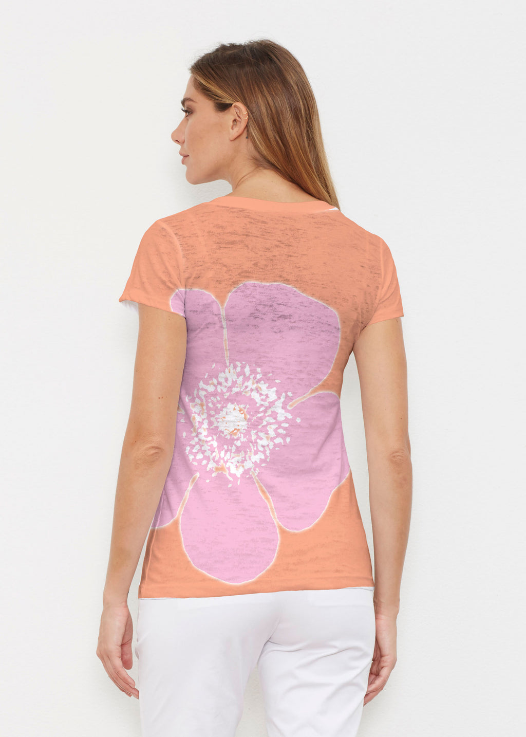 Poppy Orange-Pink (7108) ~ Signature Cap Sleeve V-Neck Shirt