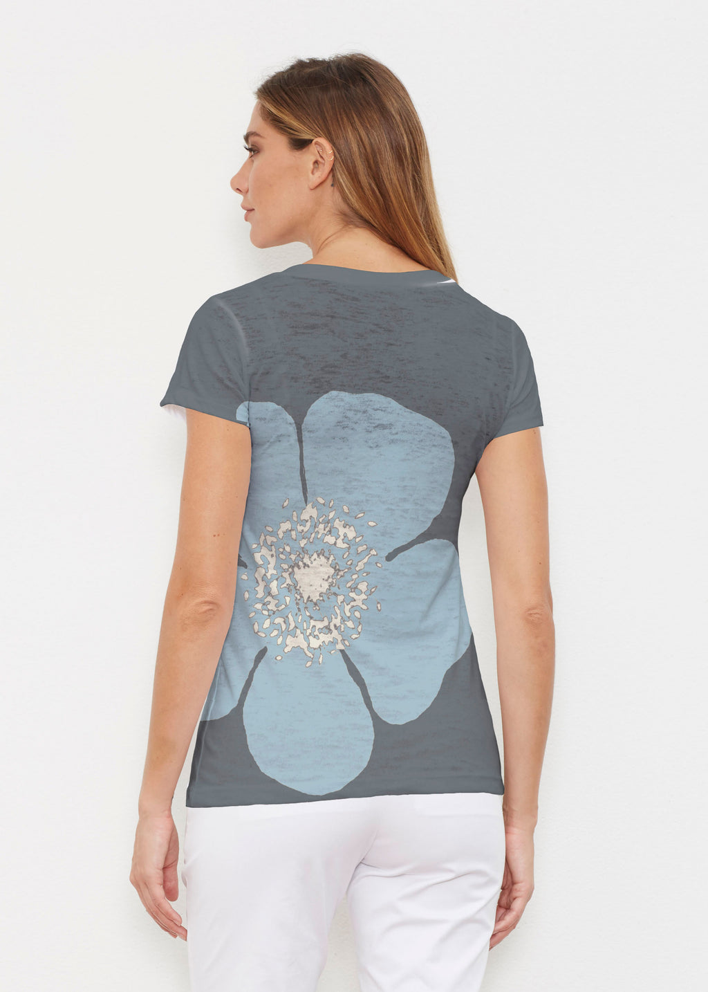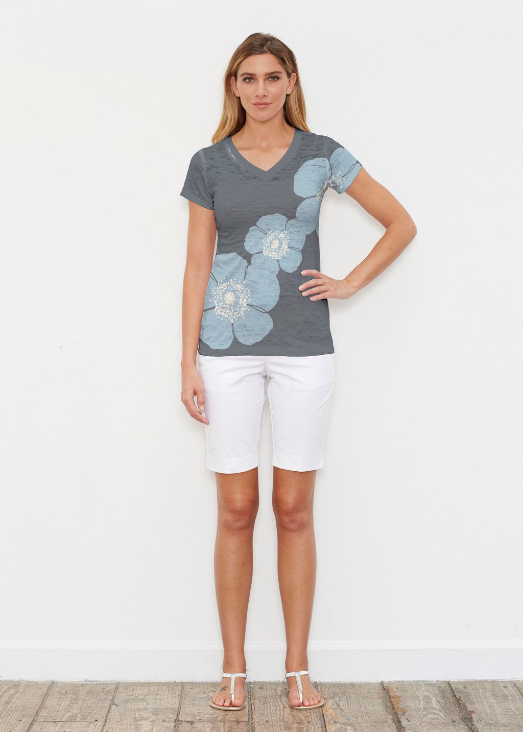Created in soft, casual burn-out Signature blend, this tee features a subtle v-neck and cap sleeves.