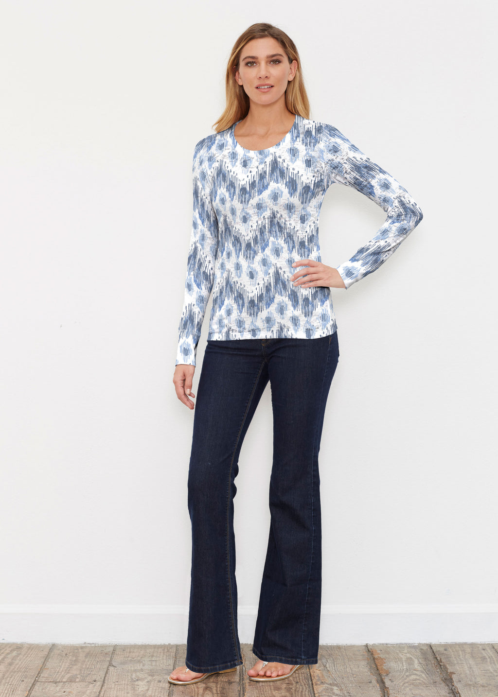 Tonal Waves Blue (7804) ~ Buttersoft 3/4 Sleeve Tunic