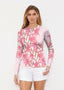 Our WHIMSY ROSE™ Safe Sun UPF 50+ long sleeve, crew neck rash guard offers versatile, beach-to-bistro style, supreme comfort, and an activewear fit. Made in a specially designed Safe Sun textile that blocks more harmful rays and provides a smart solution for those who love to swim, surf, kayak, canoe, waterski, boat, or simply relax waterside.