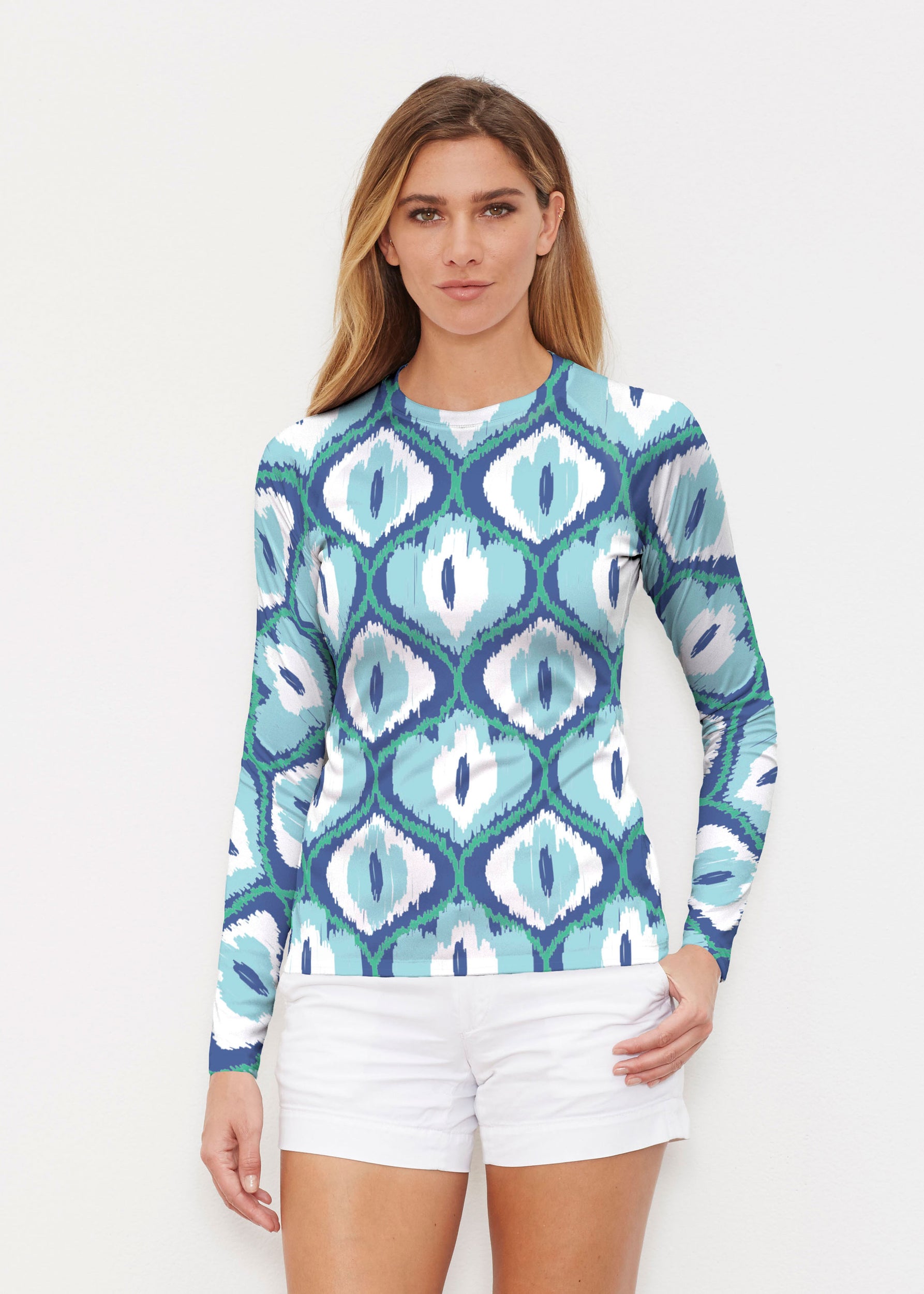 Ikat Buds Blue (8075) ~ Long Sleeve Rash Guard