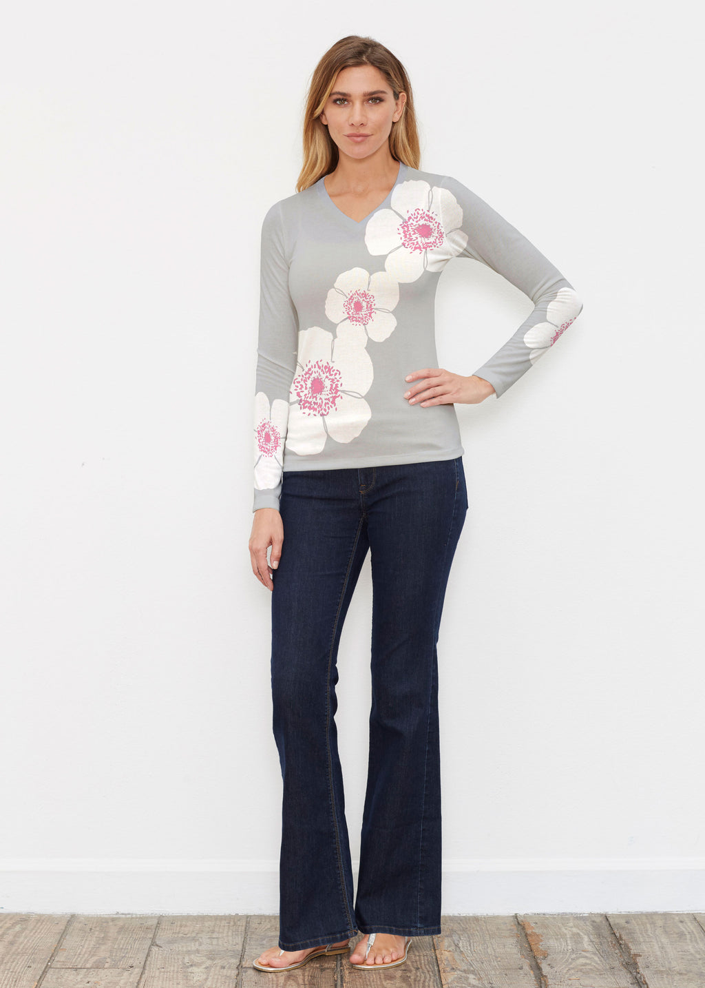 Poppy Grey (7016) ~ Butterknit Long Sleeve V-Neck Top
