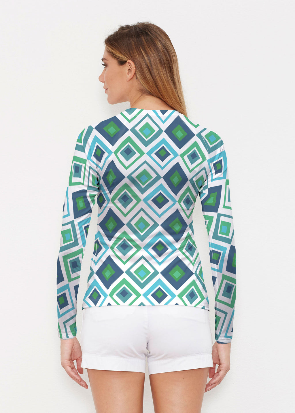 Cubed Blue (7807) ~ Long Sleeve Rash Guard