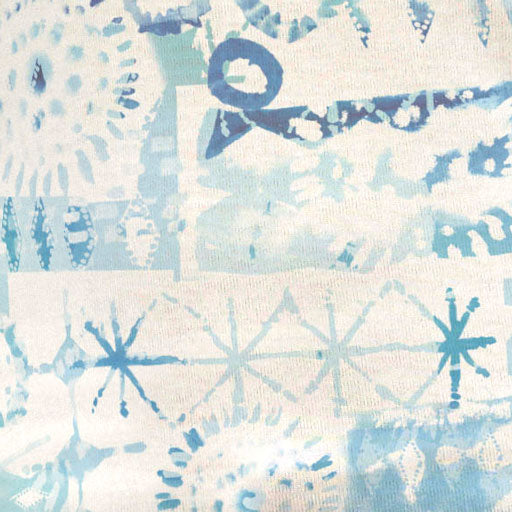 A whimsical geometric print in different hues of blue and white designed by Sara Berrenson.