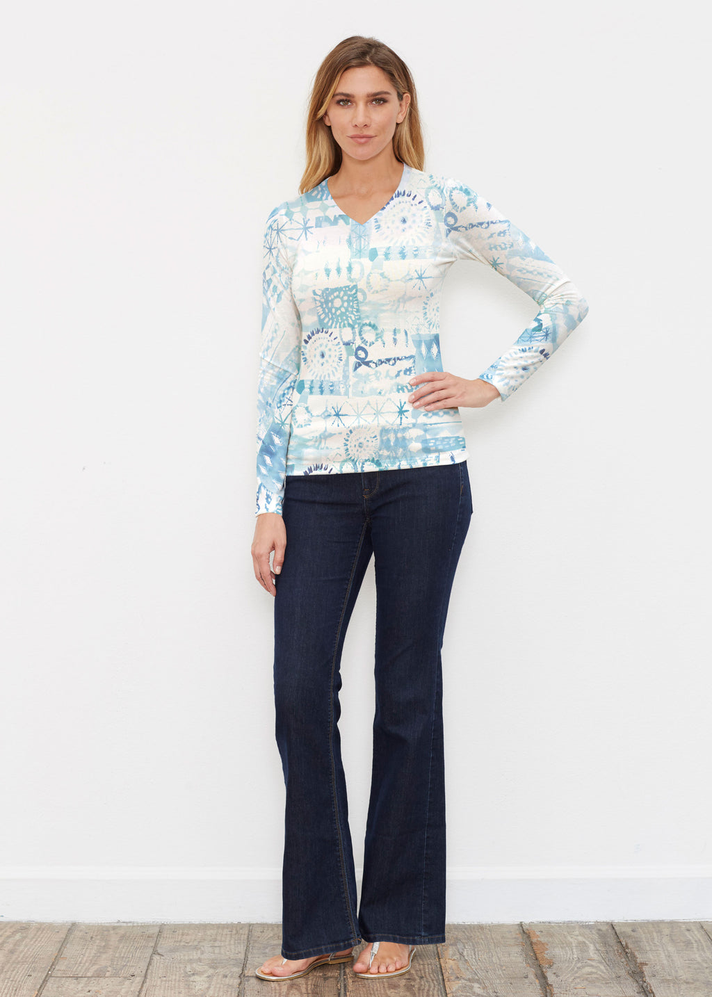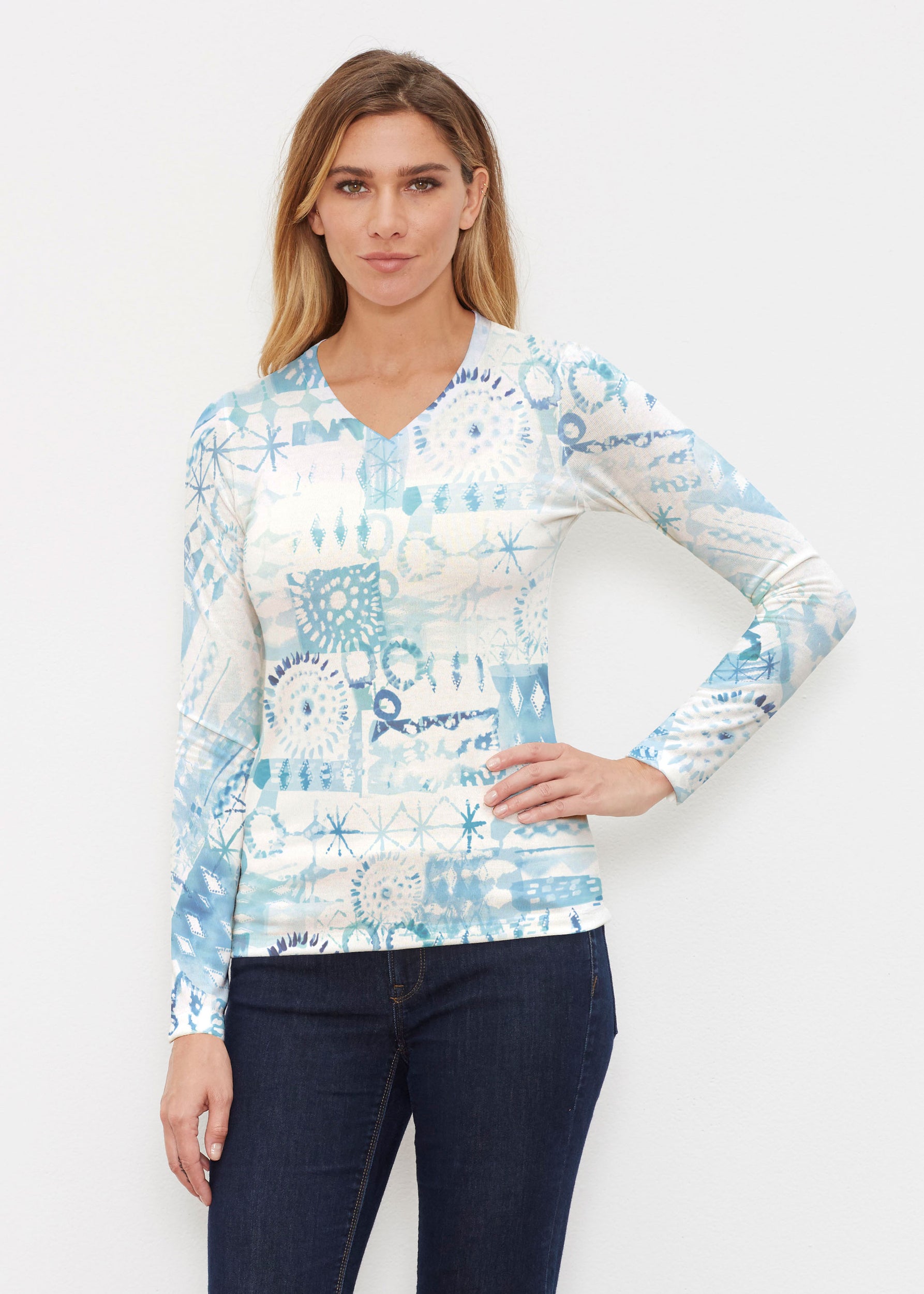 Polished and elegant, this top is a sophisticated option for chillier temps. Our soft and cozy Butterknit fabric, long sleeves, fitted shape, and v- neck make the perfect comfortable and stylish look in your favorite print.