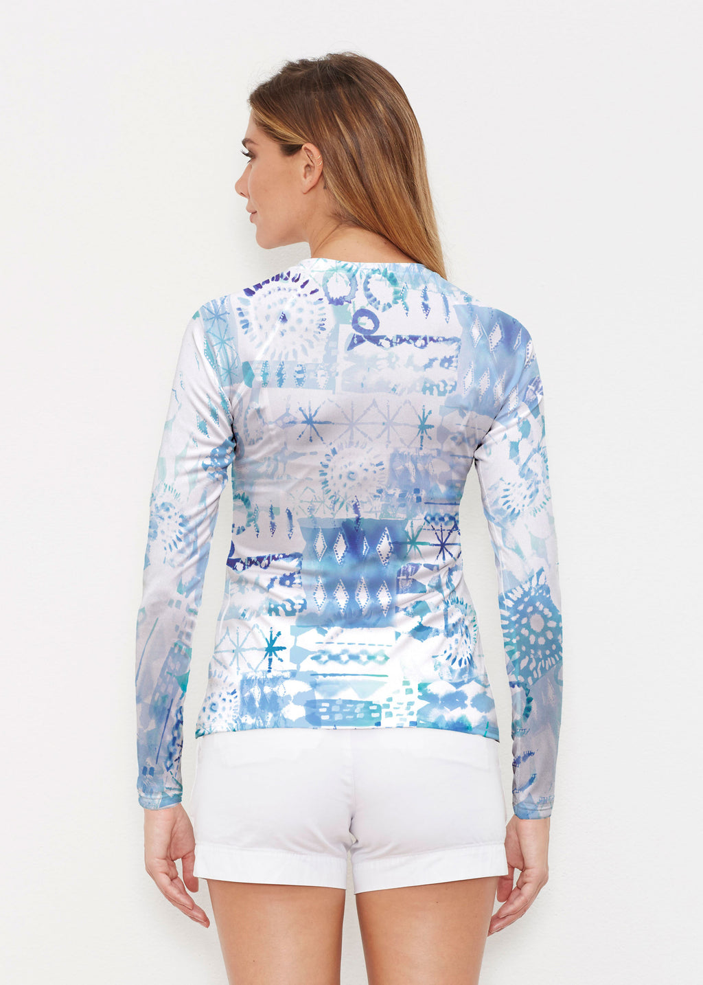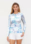 Our WHIMSY ROSE™ Safe Sun UPF 50+ long sleeve, crew neck rash guard offers versatile, beach-to-bistro style, supreme comfort, and an activewear fit. Made in a specially designed Safe Sun textile that blocks more harmful rays and provides a smart solution for those who love to swim, surf, kayak, canoe, waterski, boat, or simply relax waterside.