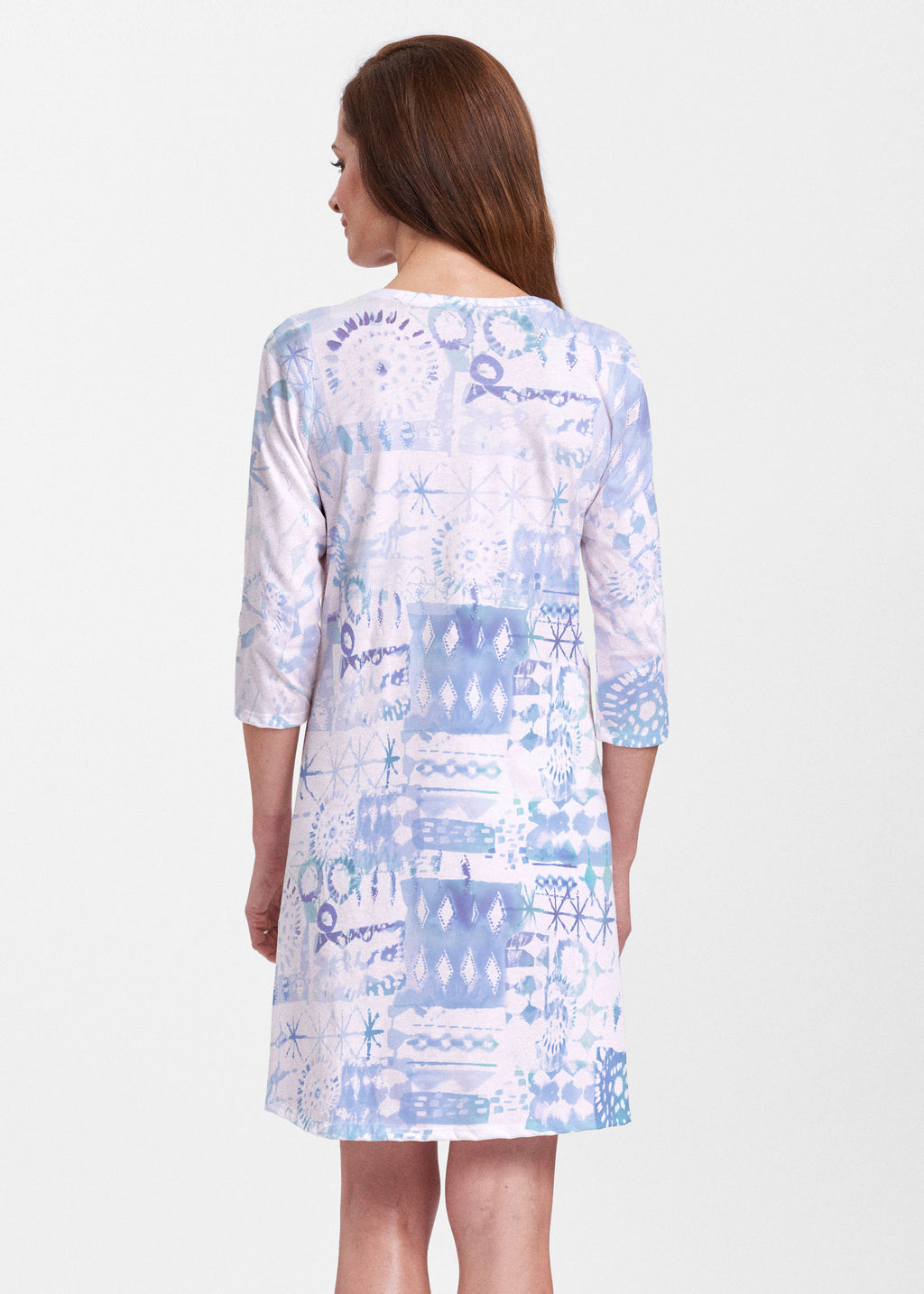 A relaxed swing silhouette with 3/4 sleeves and v-neck make up the newest edition to our Classic dress collection. Hem falls just above the knee.