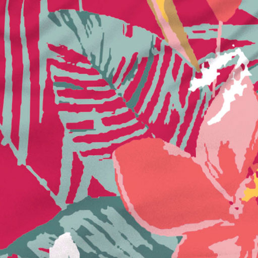 Gorgeous floral print with pink, coral, yellow, green and white designed by Sara Berrenson.