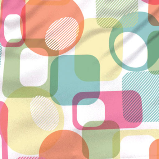 An abstract geo print with three different designs combined into this stunning print with pink, aqua, green and yellow. Designed by Diane Kappa