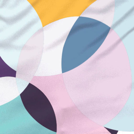 A fun and playful print with bright circles accented with a chevron striped sleeve, designed by Susan Werner.