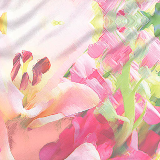 Abstract floral print with shades of fuchsia, light pink, yellow and green designed by Diane Kappa .