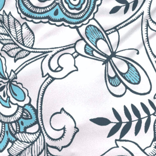 Beautiful floral print in navy and aqua with contrasting sleeves designed by Diane Kappa.
