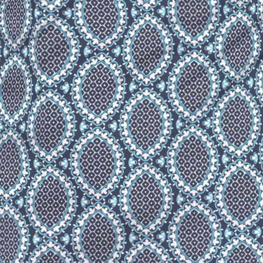 A fun subtle all over geometric print in blue and aqua, designed by Diane Kappa.