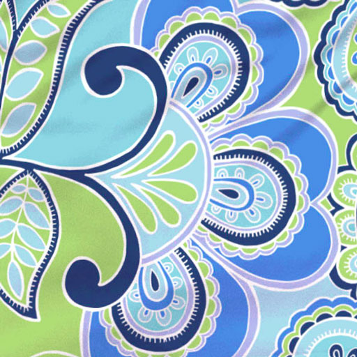 Fanciful blue, lime and turquoise print with contrasting front and back print designed by Diane Kappa.