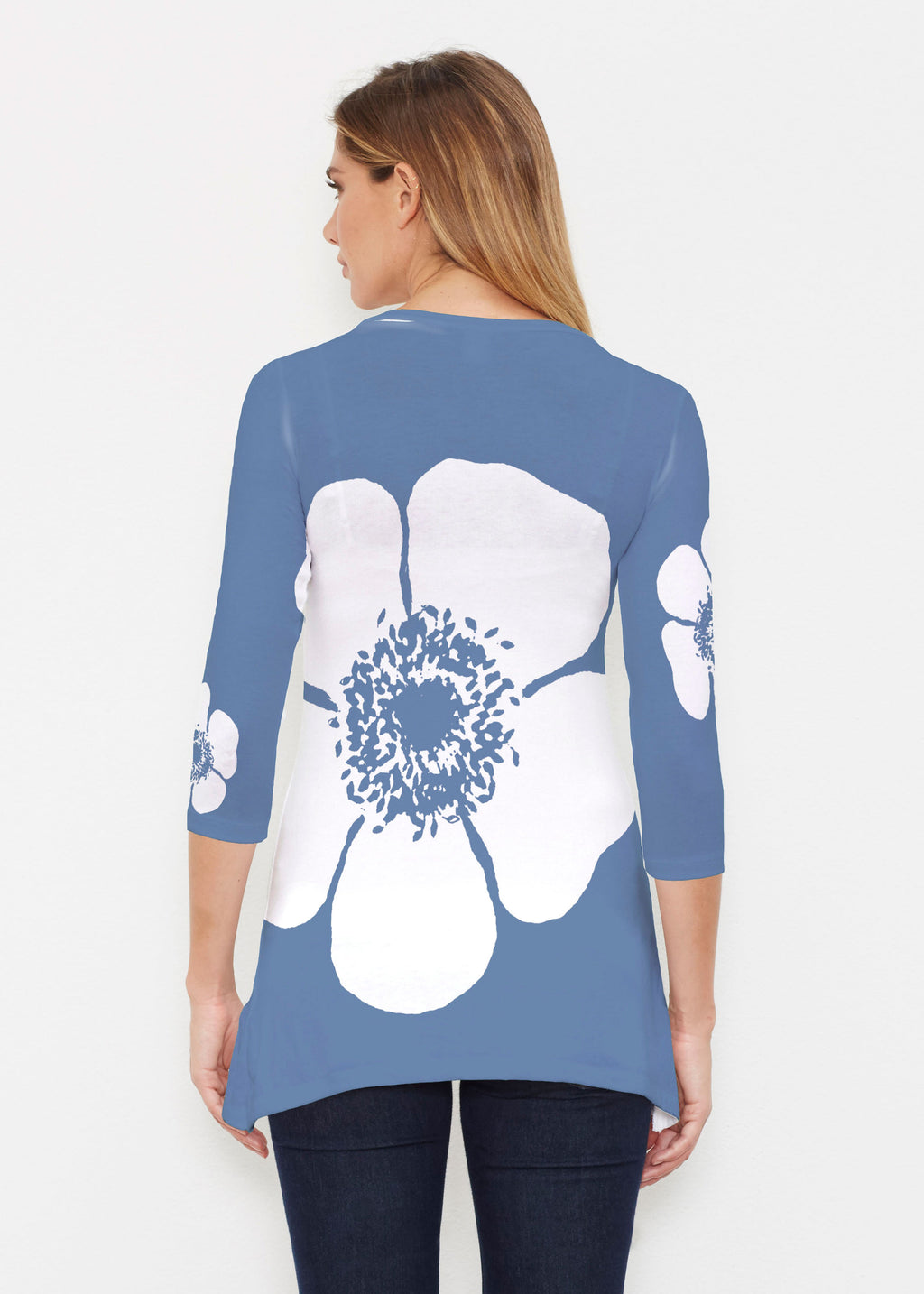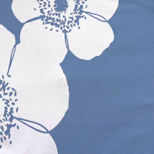 This print features small poppies on the front with a large poppy on back in navy and white. This classic favorite designed by Susan Werner.