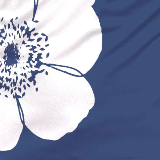 This print features small poppies on the front with a large poppy on back in navy and white. This classic favorite designed by Susan Werner.