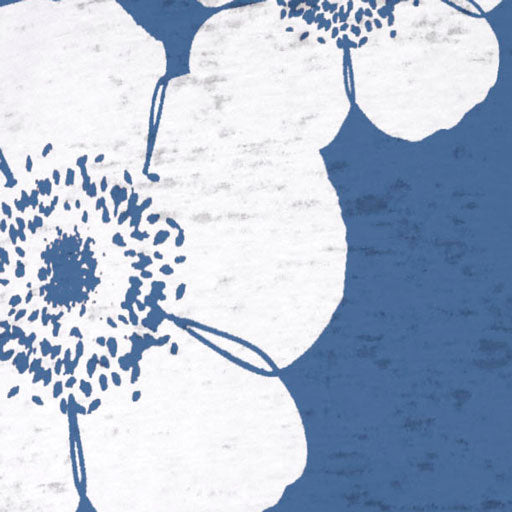 This print features small poppies on the front with a large poppy on back in navy and white. This classic favorite designed by Susan Werner.