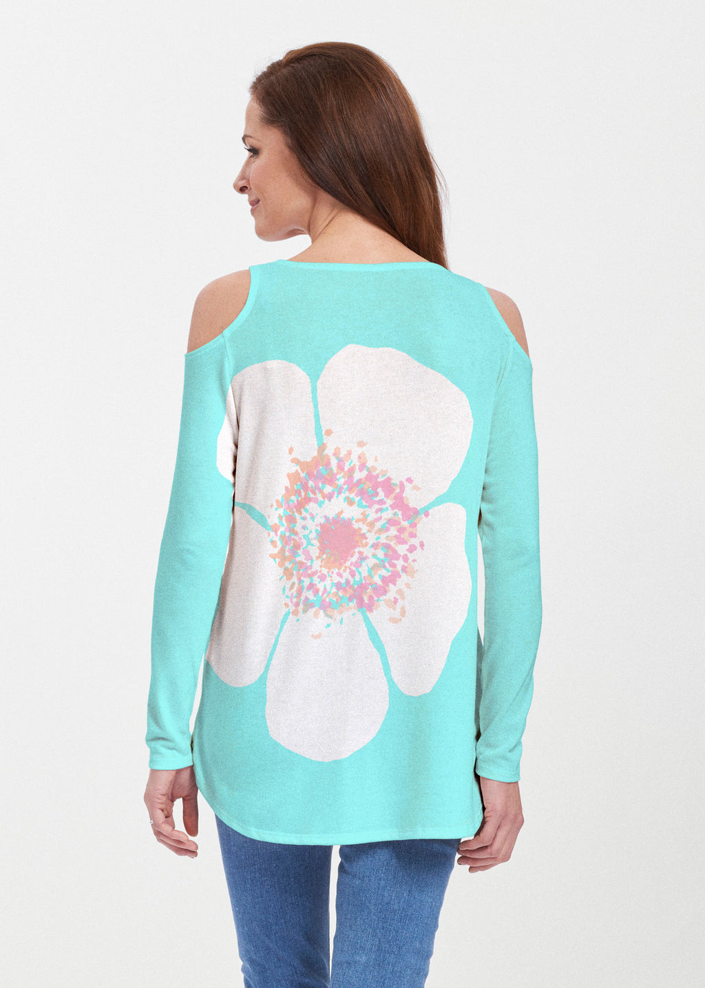 Put on comfort and style with our soft Butterknit Cold Shoulder Tunic. Subtle cut-outs, scoop neck, and long sleeves balance the relaxed shirttail hemline. Approximately 29.5 in. long size M.