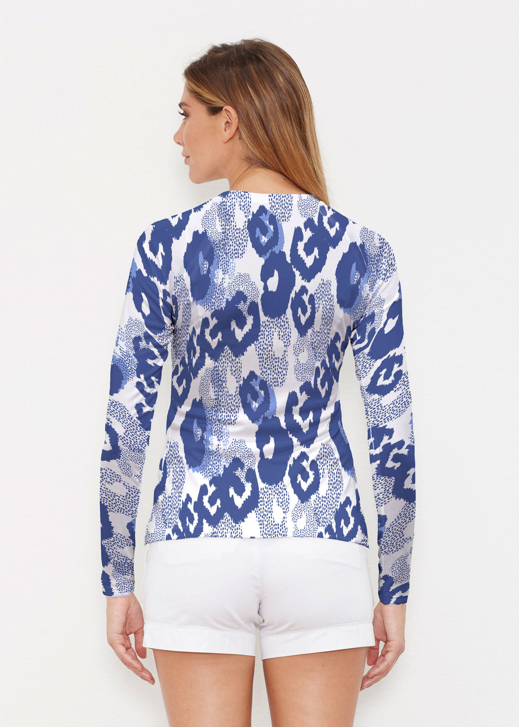 Our WHIMSY ROSE™ Safe Sun UPF 50+ long sleeve, crew neck rash guard offers versatile, beach-to-bistro style, supreme comfort, and an activewear fit. Made in a specially designed Safe Sun textile that blocks more harmful rays and provides a smart solution for those who love to swim, surf, kayak, canoe, waterski, boat, or simply relax waterside.