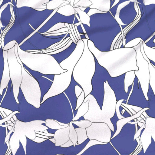 A gorgeous combination of penned florals on a solid navy front and abstract blocks on the back and sleeves designed by Susan Werner.