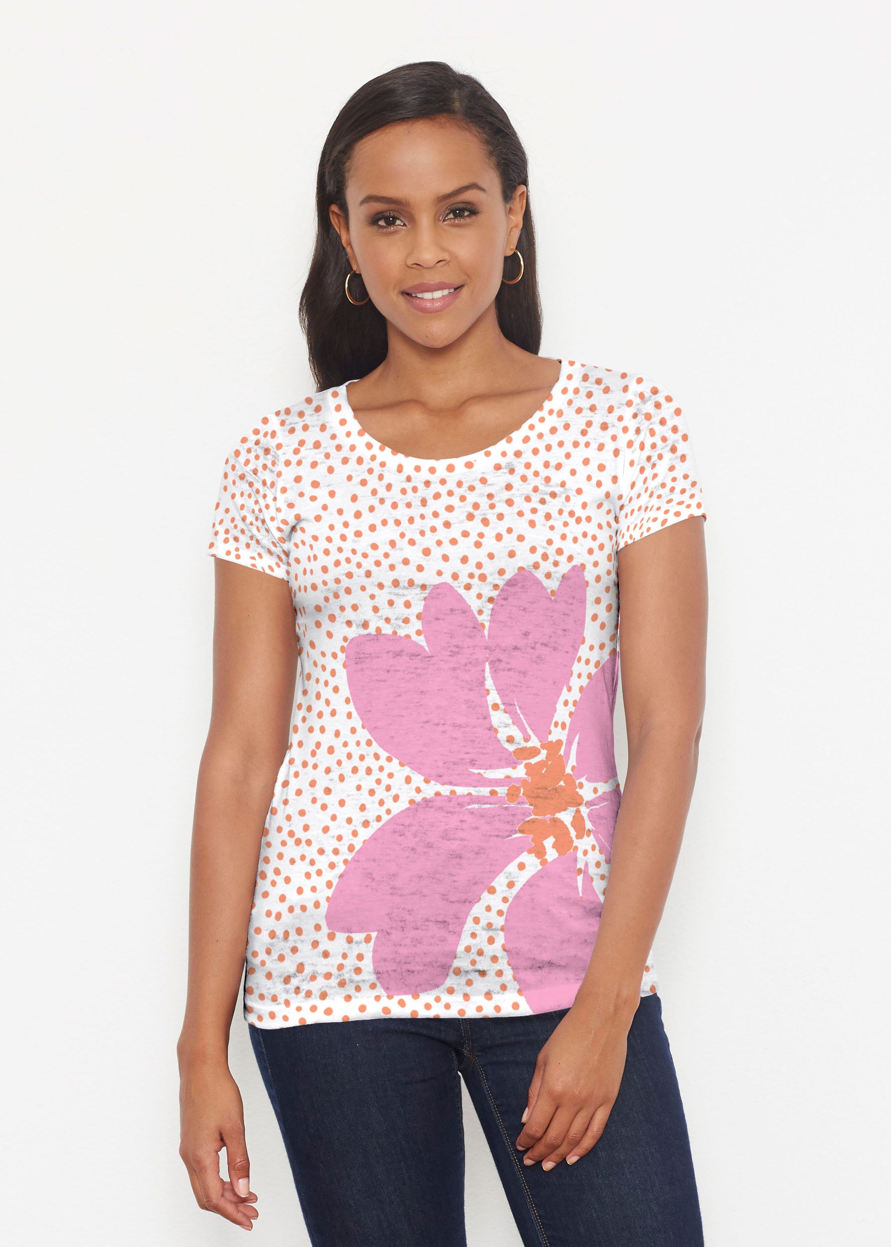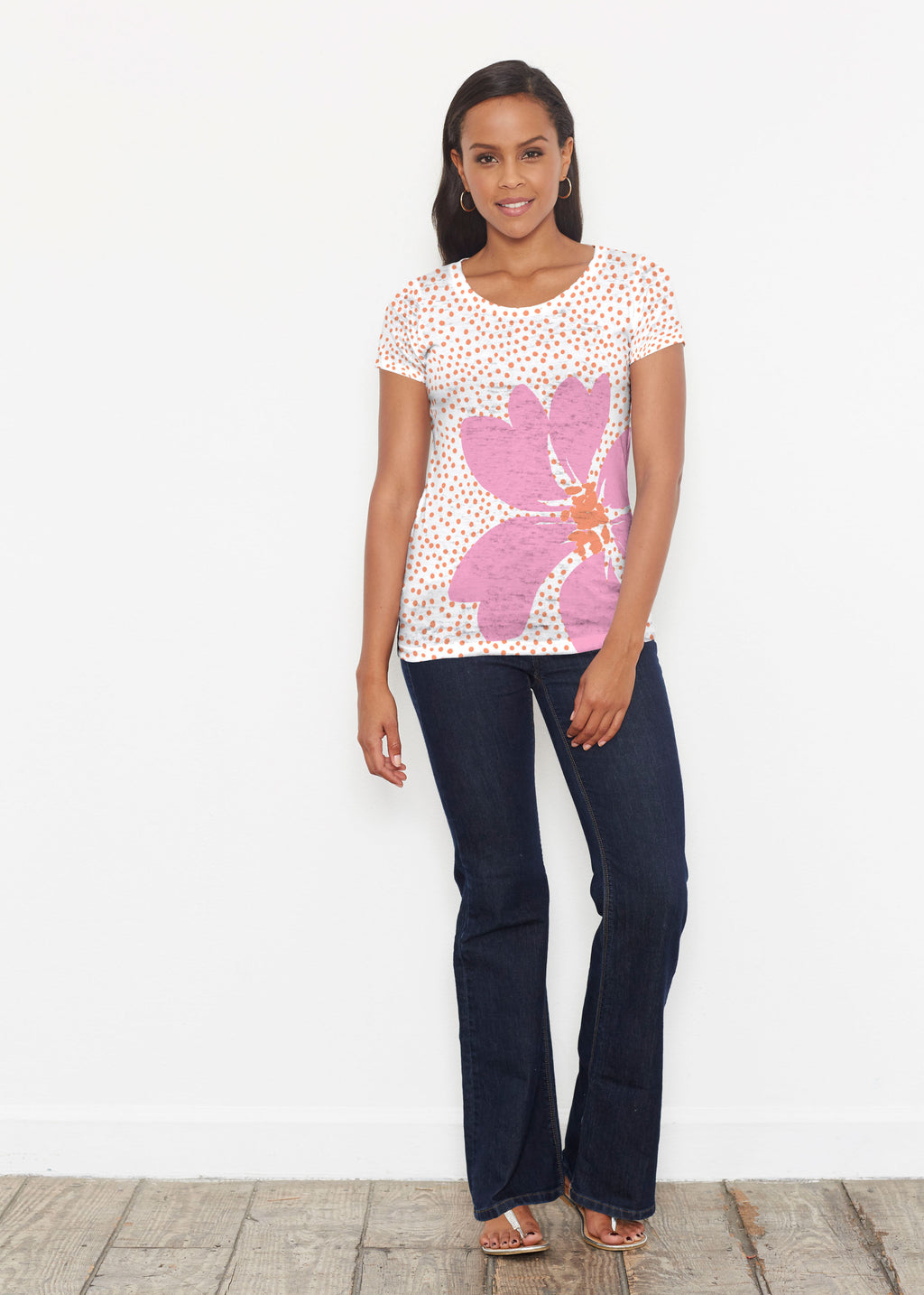 Our scoop neck tee in our casual and supremely soft Signature burnout blend is a best-selling collectible! A relaxed fit falls at the hip.