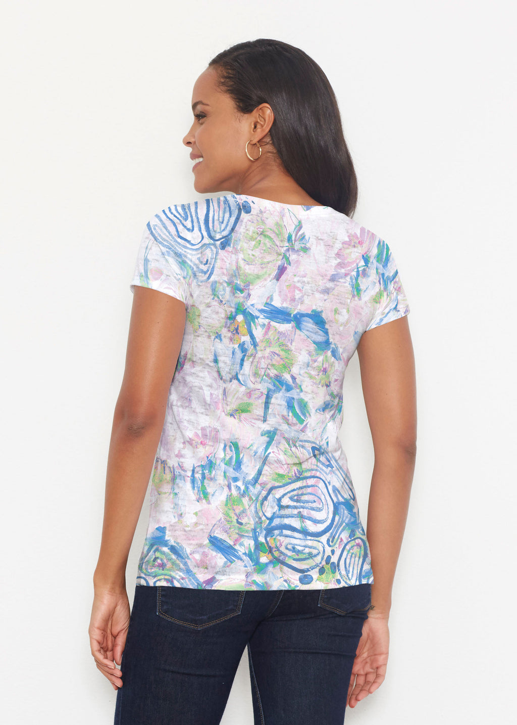Our scoop neck tee in our casual and supremely soft Signature burnout blend is a best-selling collectible! A relaxed fit falls at the hip.