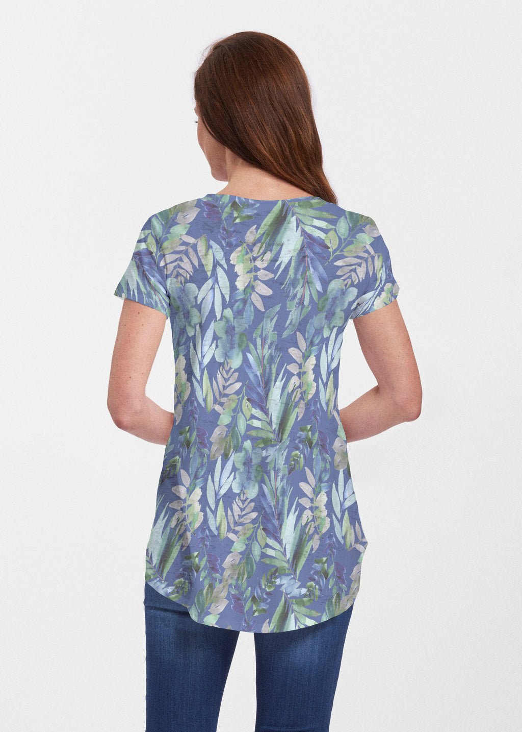 An effortlessly flattering tunic in our soft Signature burnout fabric featuring short sleeves and a scoop neck with a body that flows into a full, swinging shirttail hem.