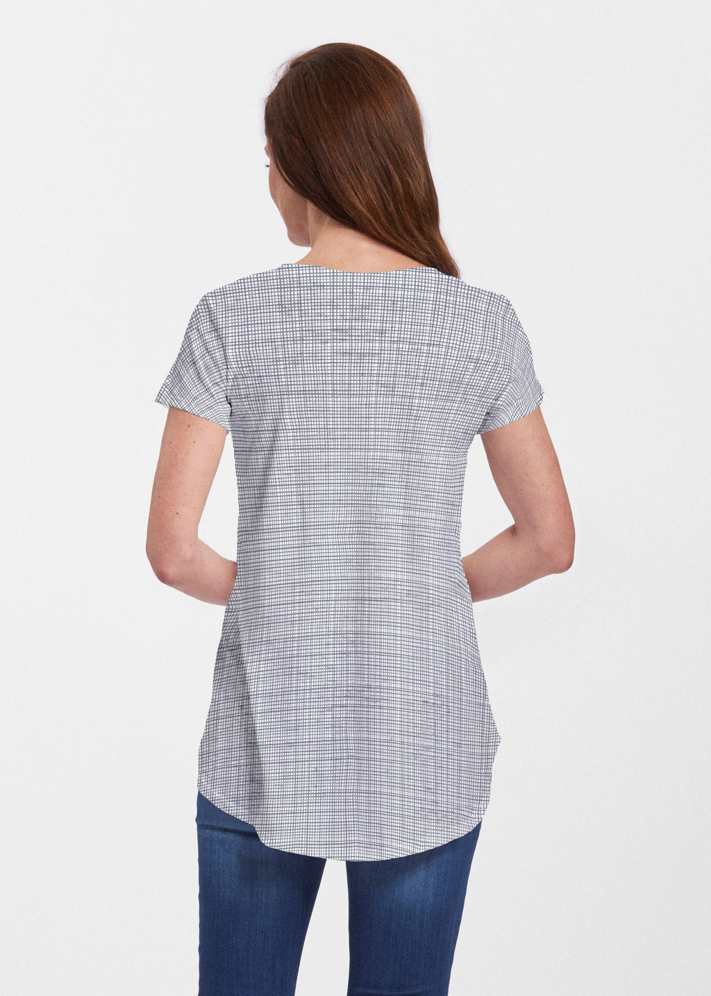 An effortlessly flattering tunic in our soft Signature burnout fabric featuring short sleeves and a scoop neck with a body that flows into a full, swinging shirttail hem.