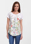 This painterly floral print incorporates a splendid array of multi-colored prairie flowers offset against a clean white backdrop. Designed by Susan Werner.