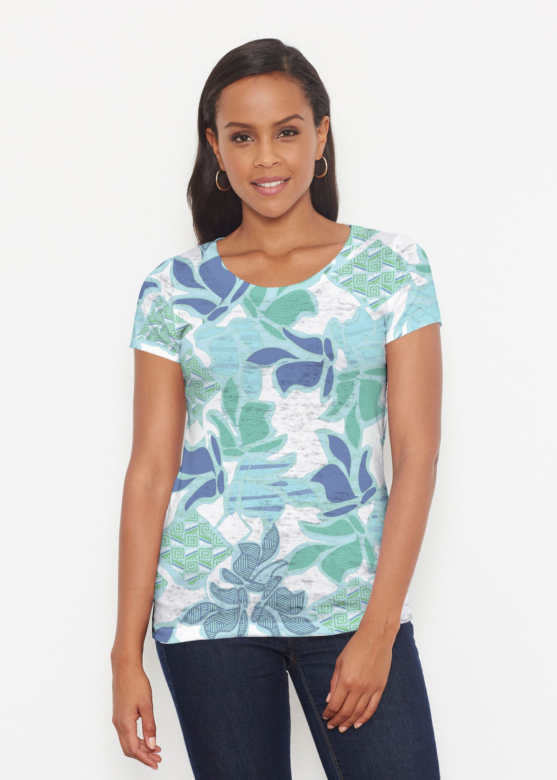 Our scoop neck tee in our casual and supremely soft Signature burnout blend is a best-selling collectible! A relaxed fit falls at the hip.