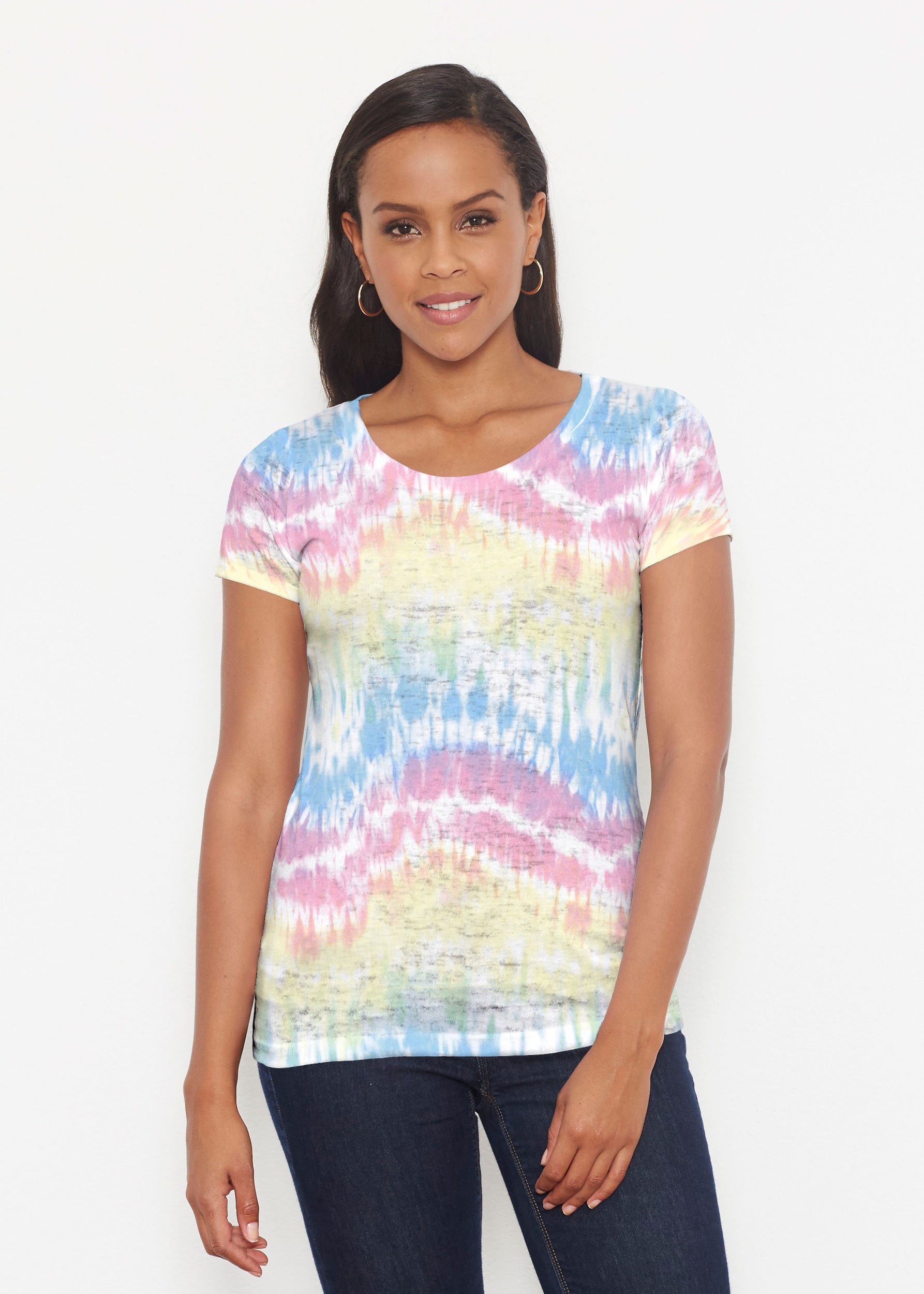Our scoop neck tee in our casual and supremely soft Signature burnout blend is a best-selling collectible! A relaxed fit falls at the hip.