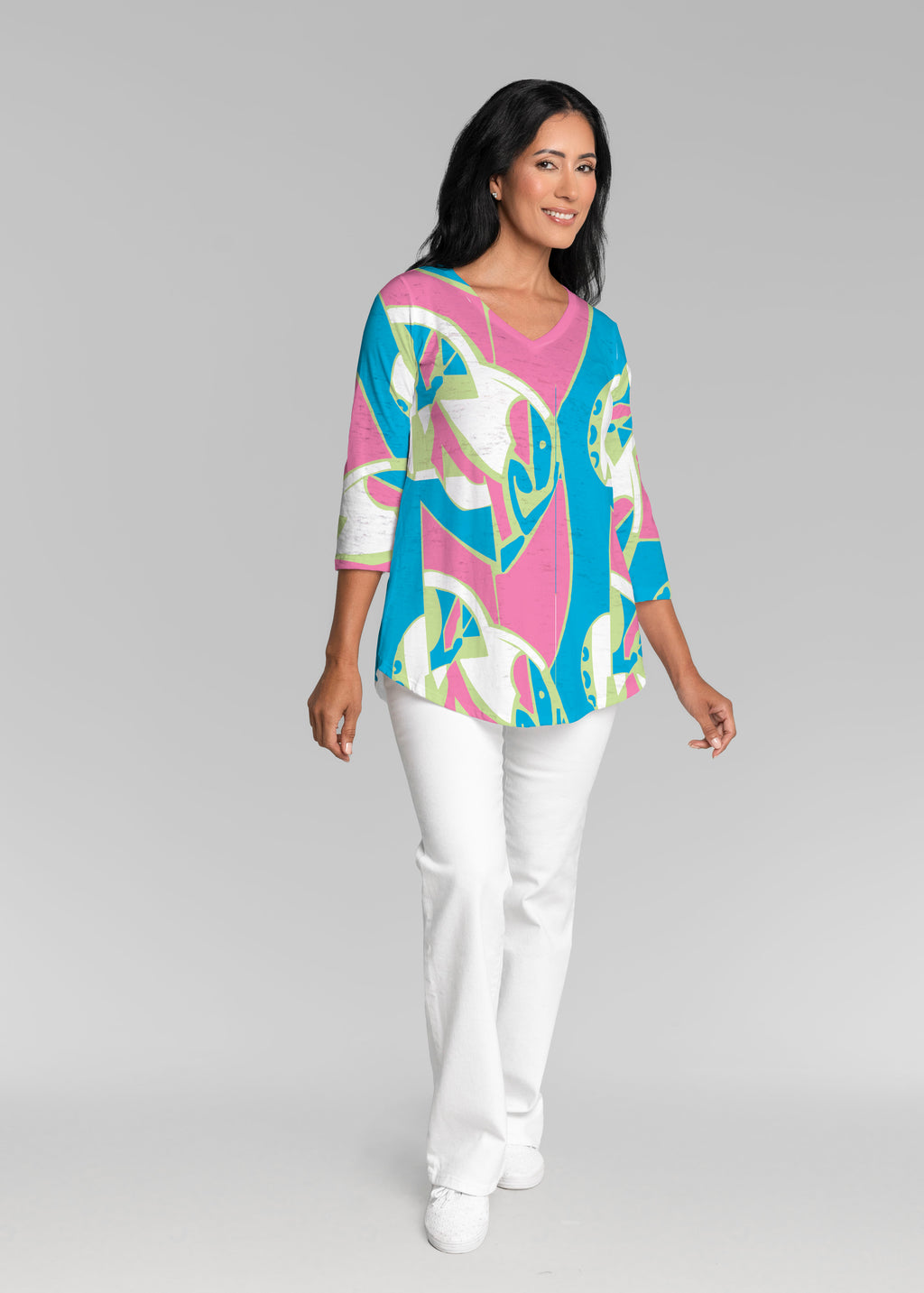 Zebra Fish (26007) ~ V-neck Flowy Tunic