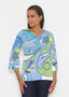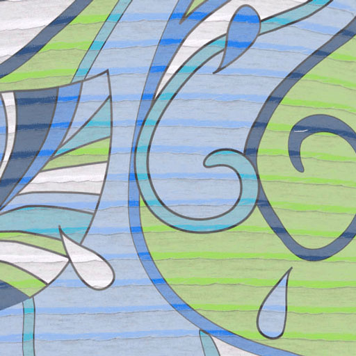Mod retro print with dazzling turquoise, lime Green and navy blue designed by Teresa Woo-Murray.