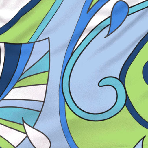 Mod retro print with dazzling turquoise, lime Green and navy blue designed by Teresa Woo-Murray.