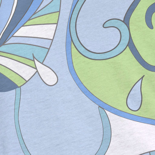Mod retro print with dazzling turquoise, lime Green and navy blue designed by Teresa Woo-Murray.