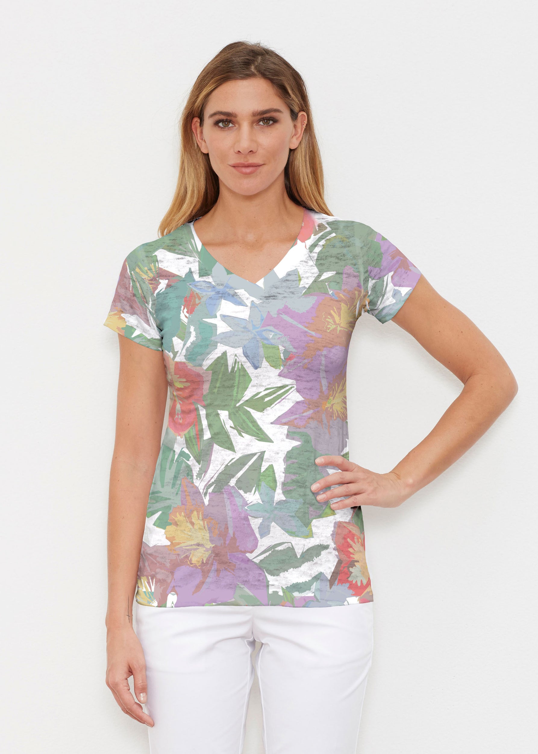 Monets Pallette (26009) ~ Signature Cap Sleeve V-Neck Shirt