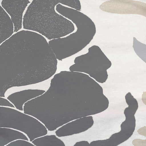 An oriental vibe on a creamy scene of light grey, gold and black.
