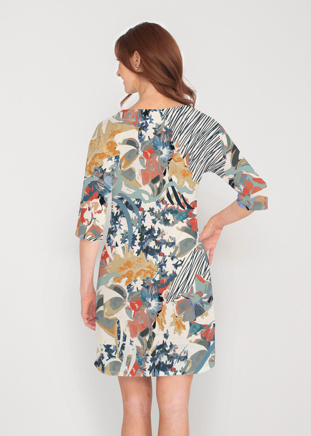 Be comfortable and fashionable all day in our soft Lucy fabric. This v-neck dress features loose 3/4 sleeves, drop shoulders and falls just at the knee.