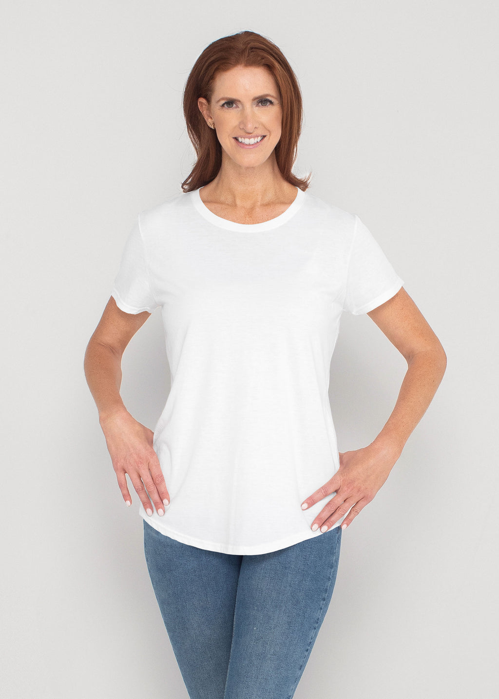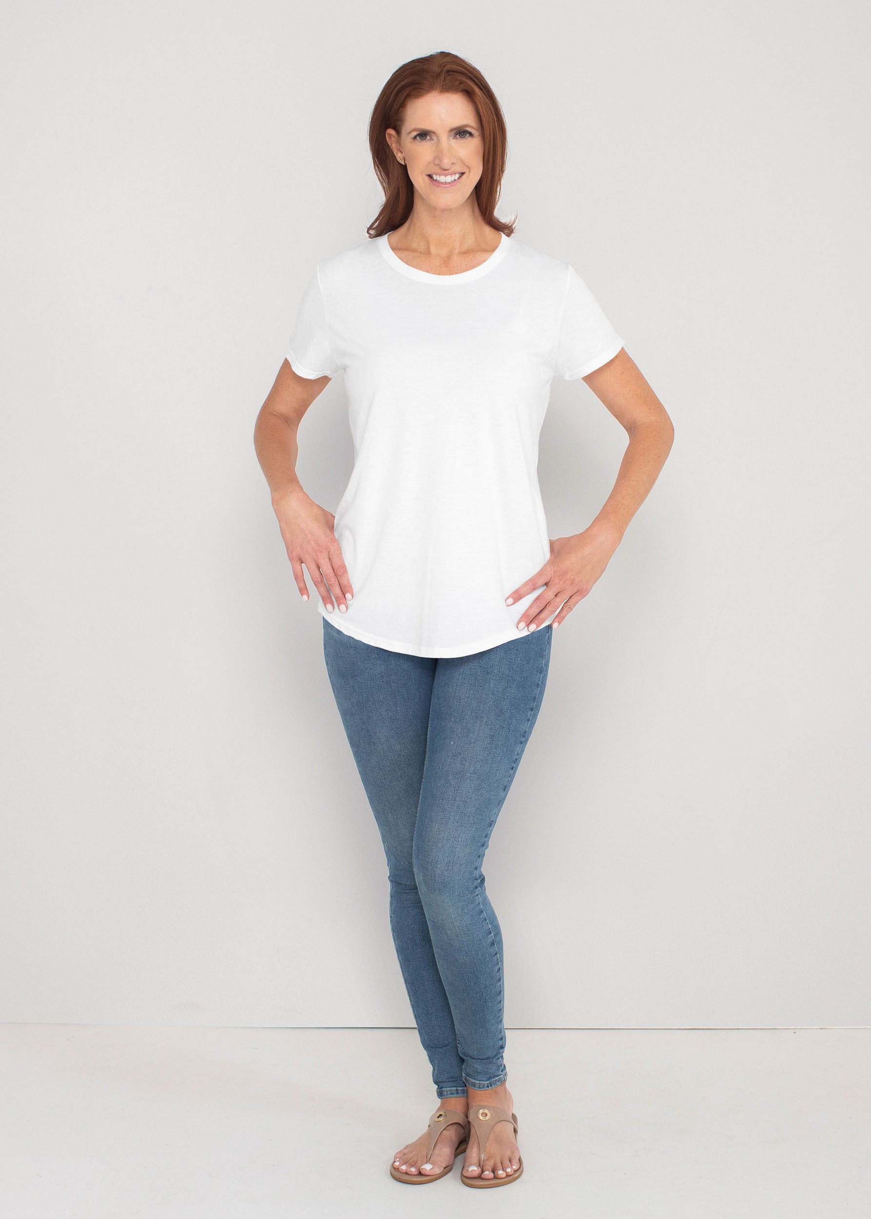 Created in soft, combed ring-spun Tri-Blend fabric, this tee features dolman sleeves, a fashionable curved bottom hem and contoured side seam.